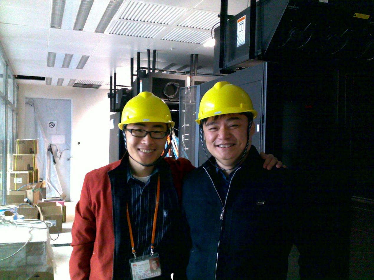2010年,我(左)和我的老師Davy哥(右)在菊廠上研所,廁所都還沒建好,VDI已Ready