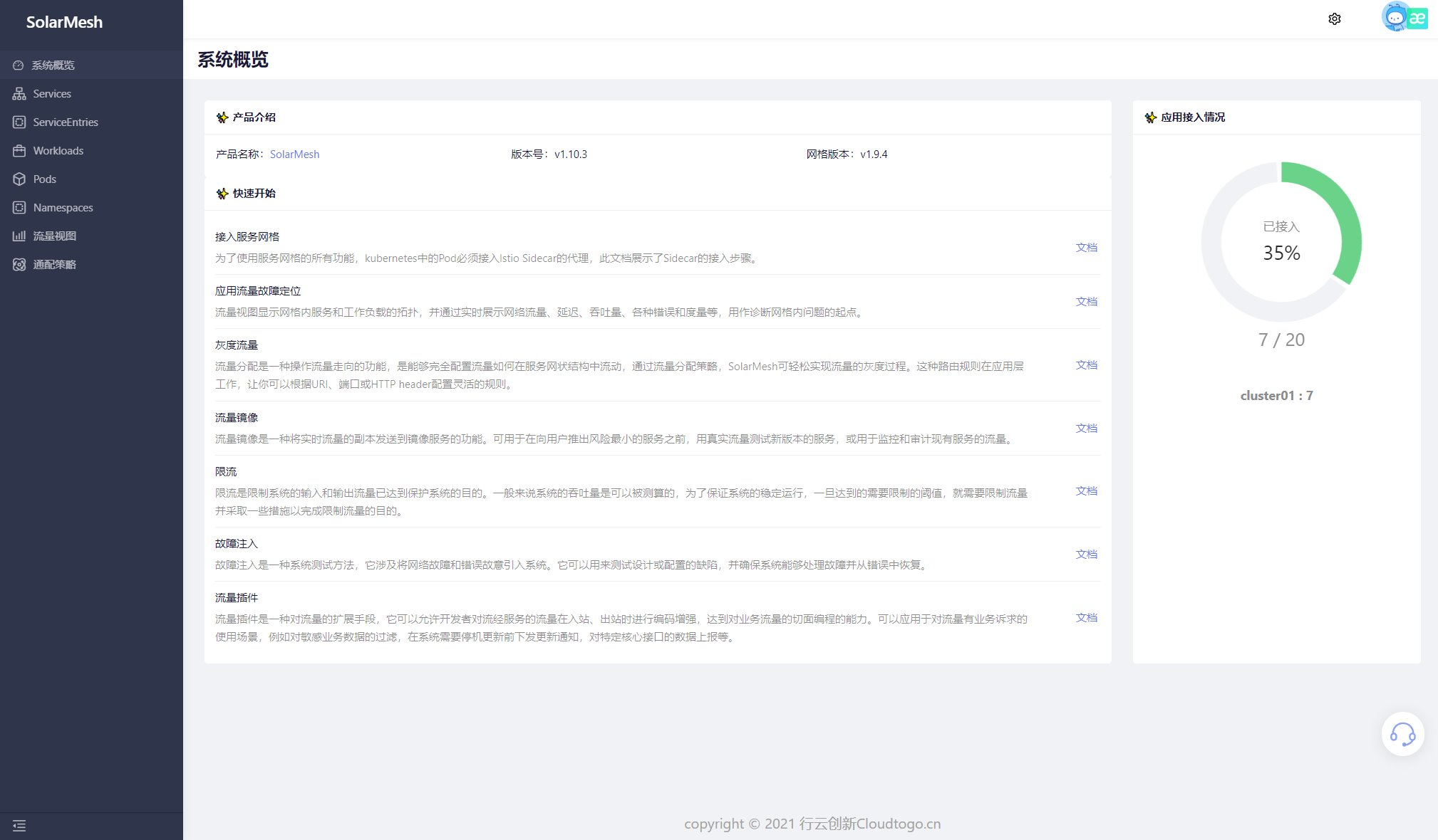 SolarMesh是leyu.樂魚創新推出的流量治理平臺,它基于Istio,為部署在K8s集群上的應用提供全面的流量治理能力。