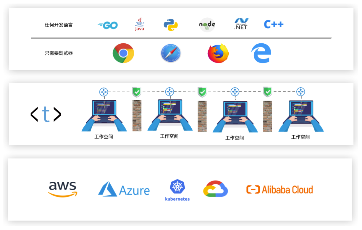 任何語(yǔ)言,任何時(shí)間,任何地方,只需要打開(kāi)瀏覽器即可進(jìn)行開(kāi)發(fā)!