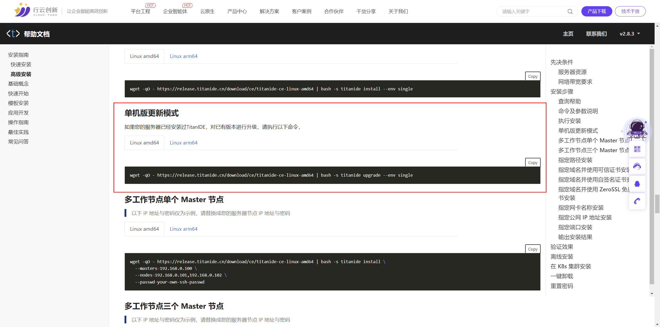 如您之前已經(jīng)部署 TitanIDE 過(guò)往版本,只需一行命令,即可將 TitanIDE 升級(jí)到最新版本: