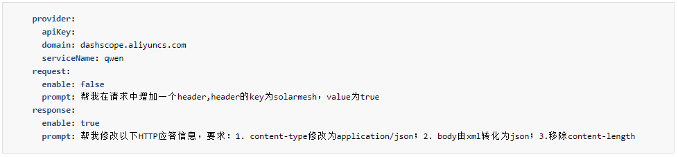 AI-Transformer 是 SolarMesh AI 插件中的一大亮點。通過配置 AI 請求/響應轉換插件,用戶無需編寫復雜代碼,即可使用自然語言來調整服務的請求和響應數據。這一功能在測試場景中尤為實用,測試人員可以基于原始請求/響應,自動生成用于邊界條件測試的新請求/響應,大大提高了測試的全面性和效率。例如,通過簡單的自然語言指令,即可實現 HTTP 應答信息的自動化修改,如修改內容類型、轉換數據格式、移除特定頭等。