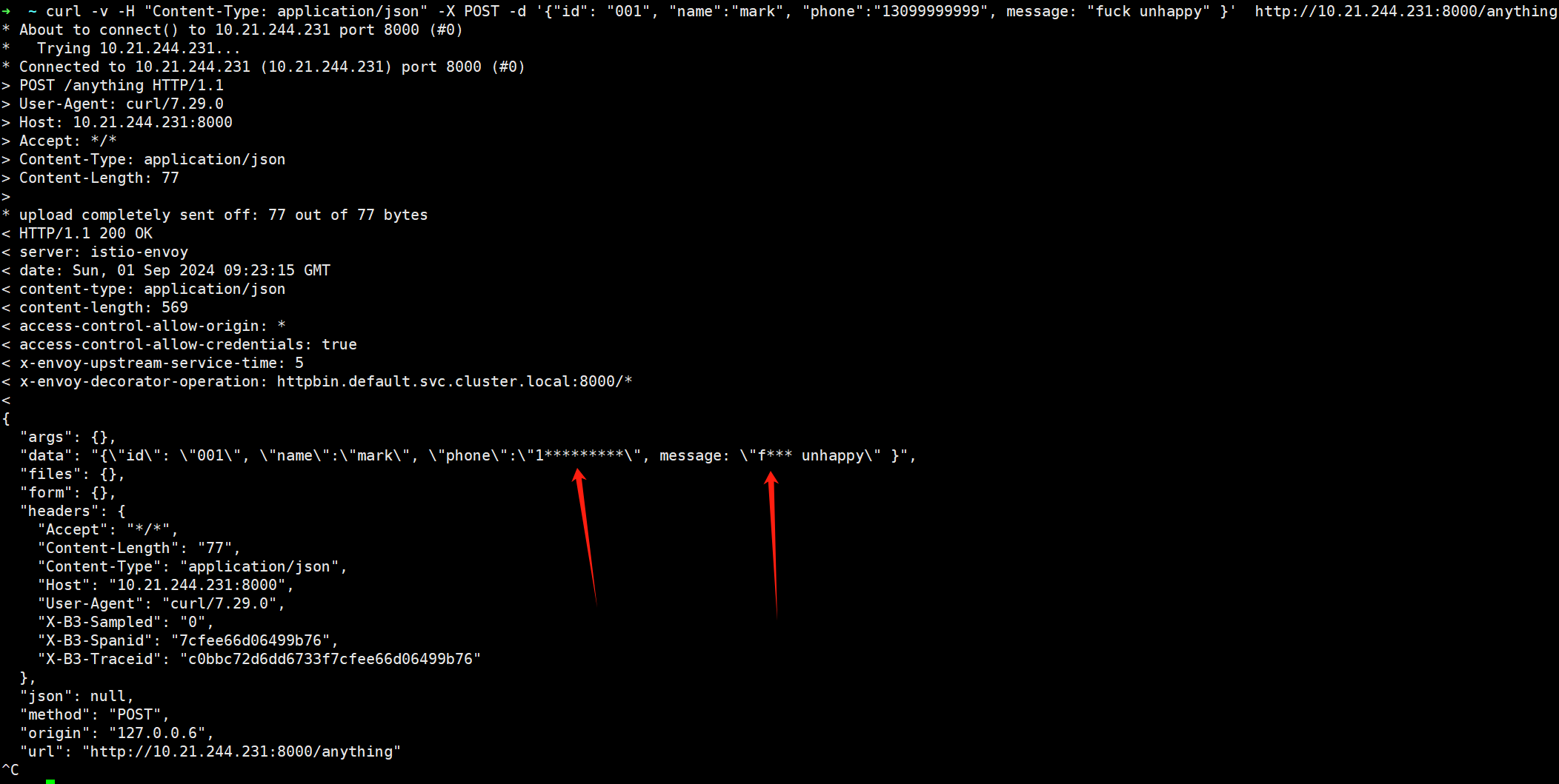 除了基本的請求/響應轉換外,AI-Transformer 插件還能在業務數據脫敏方面大顯身手。通過配置相應的規則,插件可以自動對返回數據中的敏感信息進行加密處理,如手機號、銀行卡號等隱私數據,以及英文違禁詞等,有效保護用戶隱私和數據安全。這一功能在數據共享、合規性要求較高的場景中尤為重要。