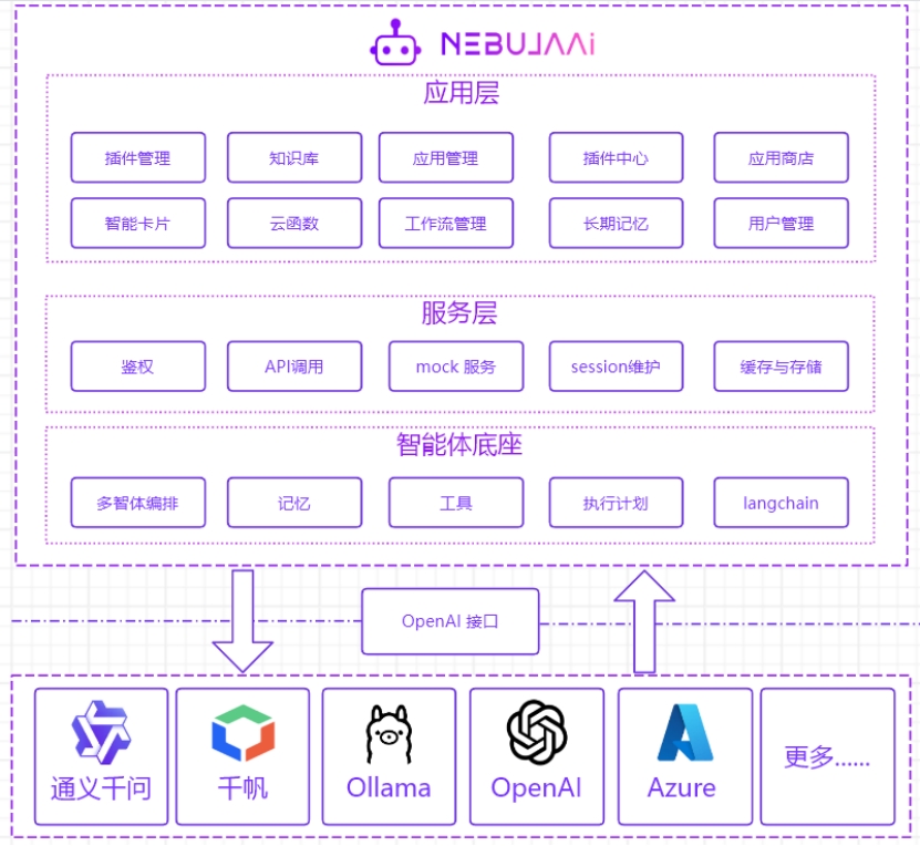 NebulaAI 支持對接各種大語言模型,涵蓋本地私有大模型、國內領先的公有大模型和國外知名的公有大模型等,我們提供靈活對接接口,滿足企業不同業務場景的需求。