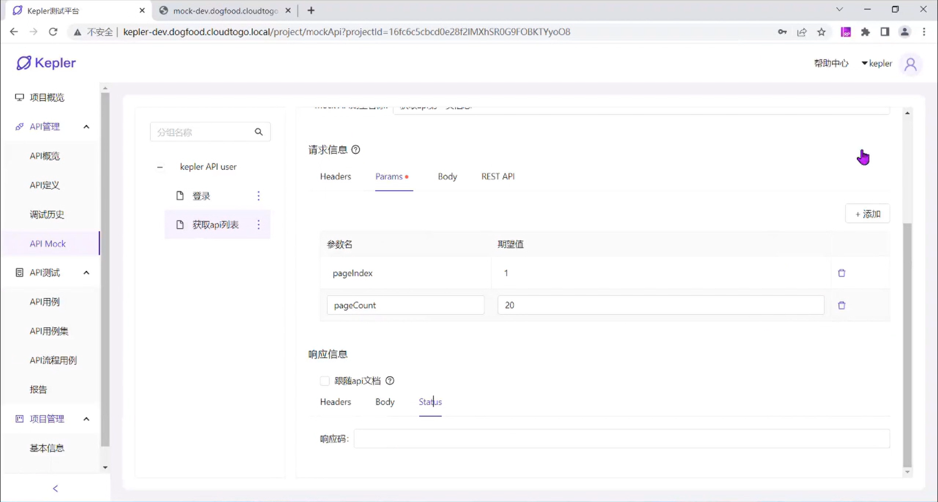 KeplerAPI有用基于服務級別的mock服務,創建各種不同Mock規則,返回各種Mock數據,能夠更為真實模擬后端API。后端人員在未完成研發的情況下,前端可以開啟Mock服務,加快項目研發